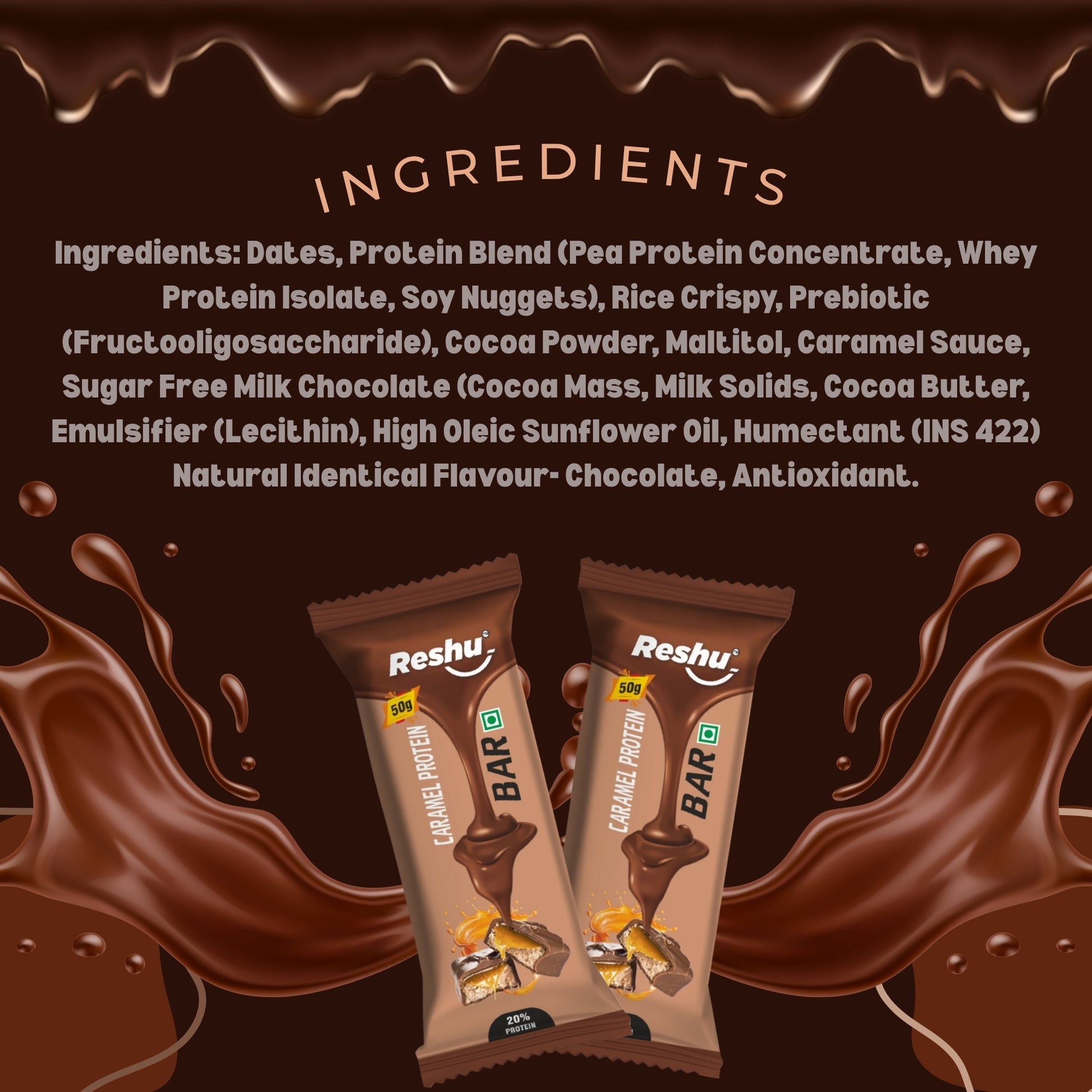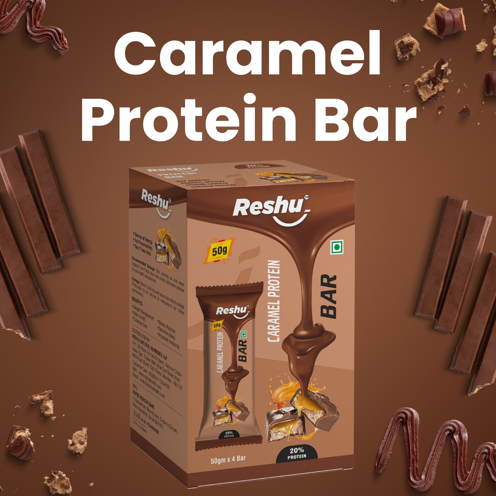 Reshu Caramel Protein Bar (4 * 50g) | 20% Protein | High Fibre & Low Fat